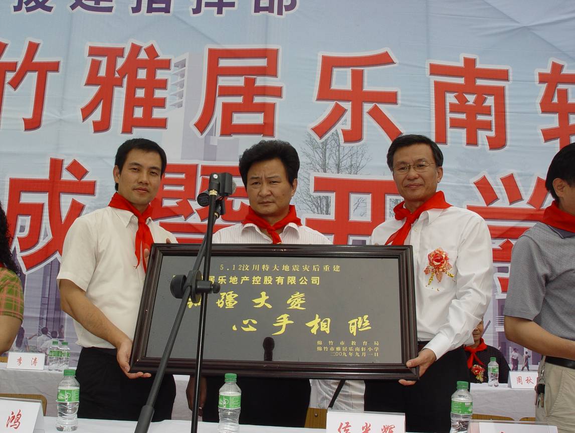 2009年,雅居樂(lè)捐建四川災(zāi)區(qū)的7所學(xué)校投入使用,另有5所學(xué)校開(kāi)工建設(shè)