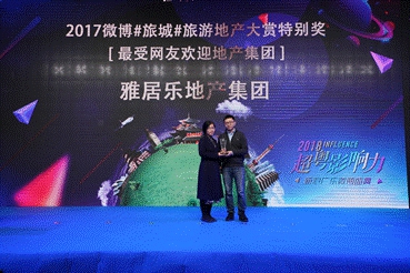 雅居樂地產獲“微博十大地產品牌影響力大獎”與“2017微博#旅城#旅游地產大賞特別獎最受網友歡迎地產集團”雙項大獎。這不僅是諸多業(yè)內專業(yè)人士對雅居樂的肯定,也是眾多微博網友長期以來的支持。